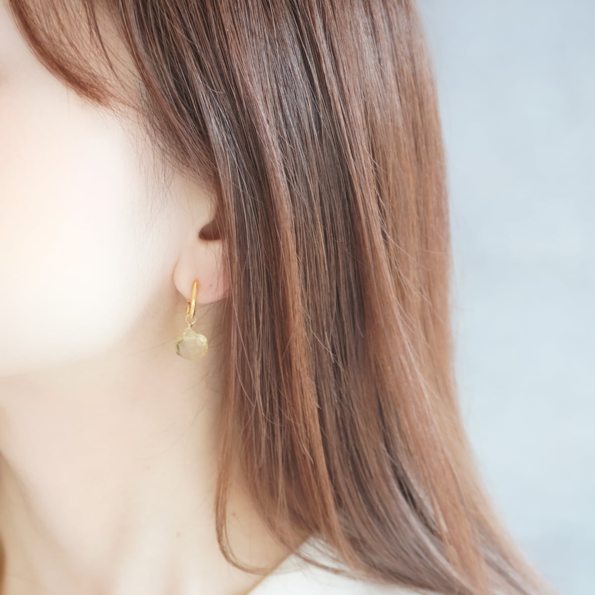 痛くない2wayフープイヤリング【宝石質レモンクォーツ×日本製特許金具/Silver925+24kgp】