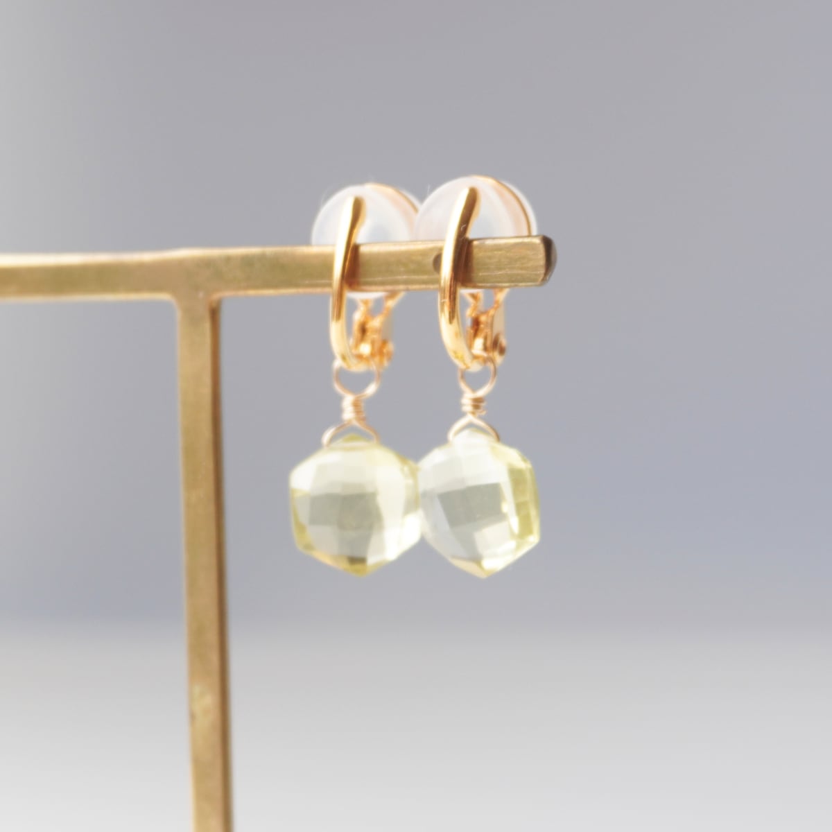 顔まわりにパッと明るさを与えてくれる、宝石質レモンクォーツの2wayイヤリングです。
