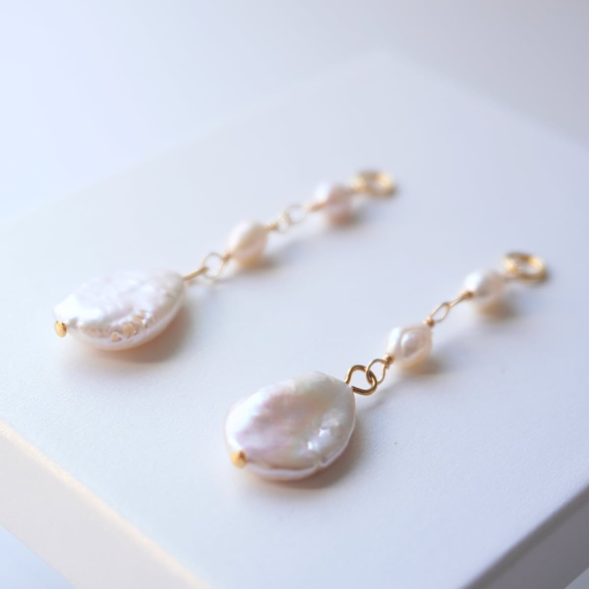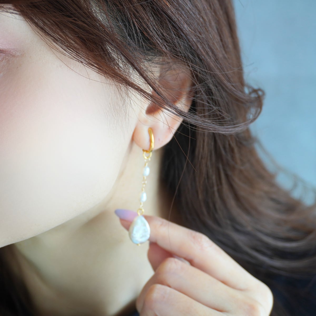 バロックパールの表情が印象的。艶・テリも美しい大ぶりの揺れるイヤリングチャーム