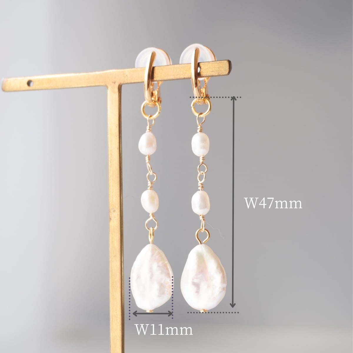 イヤリングチャーム 14kgf バロックパール 淡水パール ロング 大ぶり フォーマル デイリー