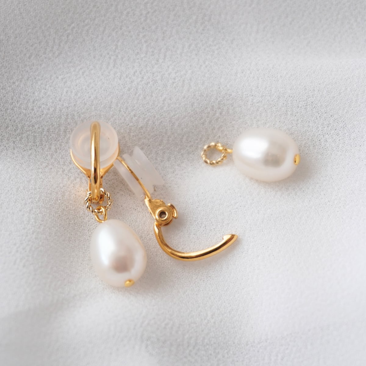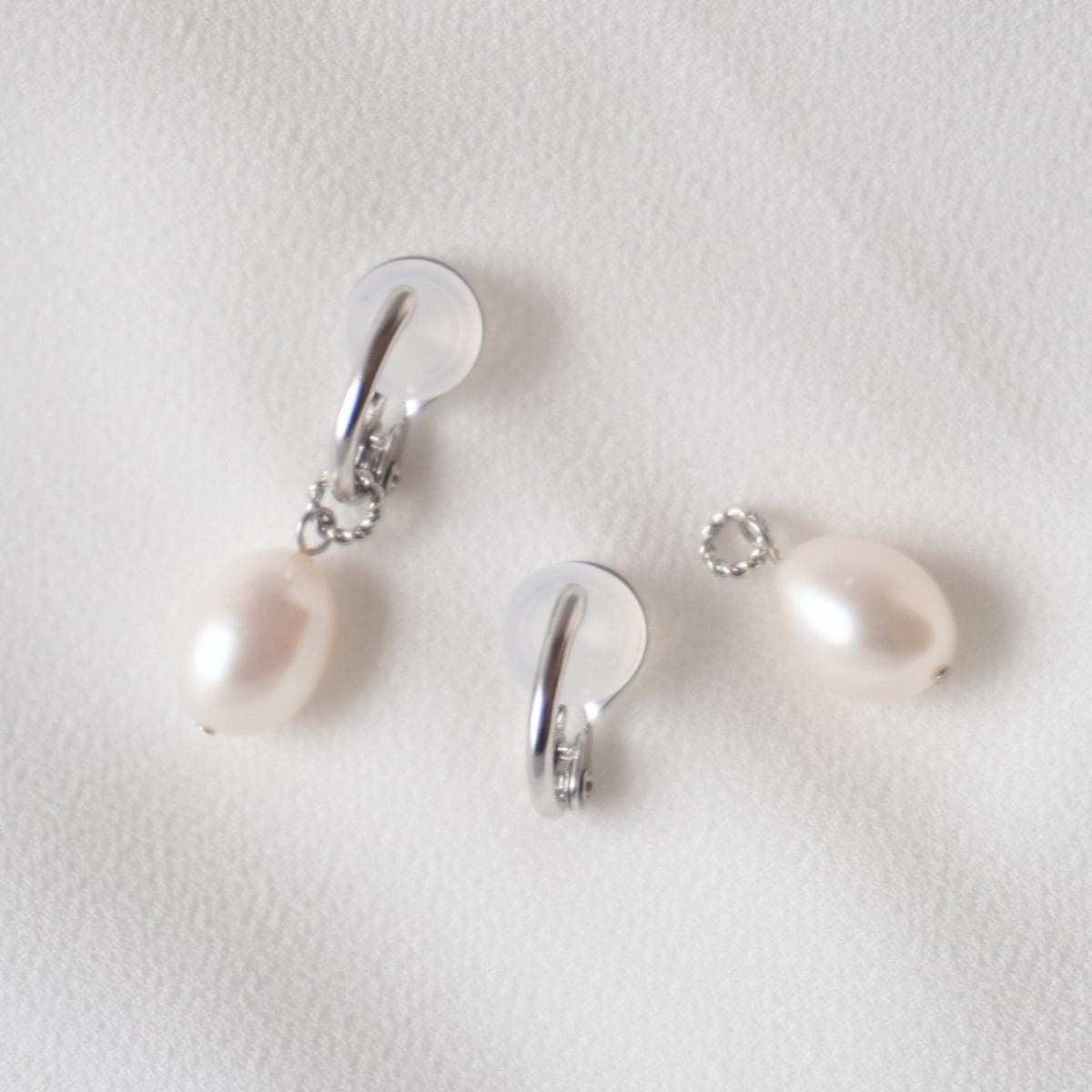 イヤリングチャーム 淡水パール ホワイト 着せ替えチャーム ゴールド シルバー 上質