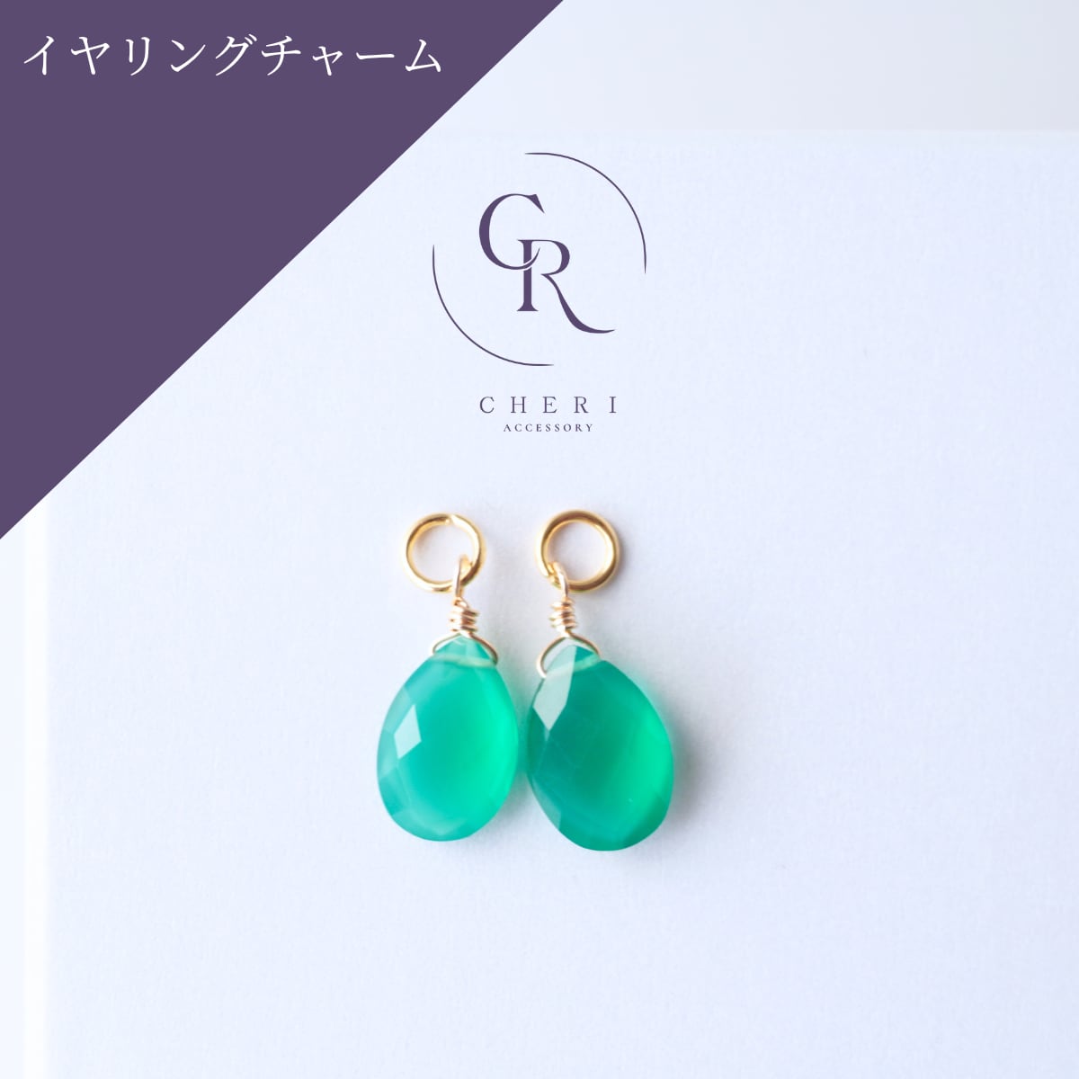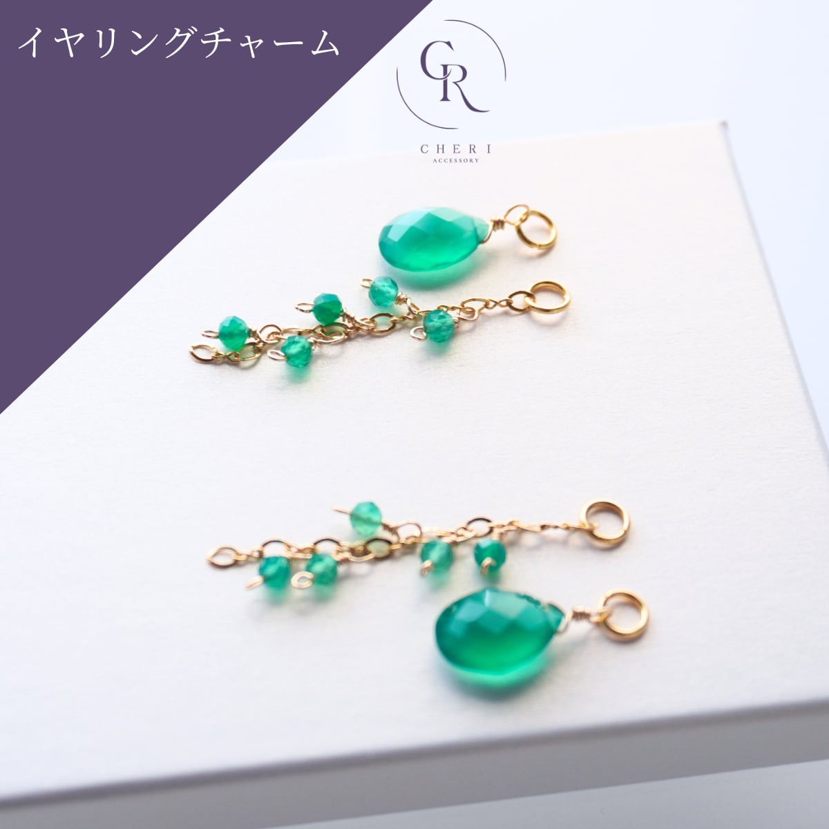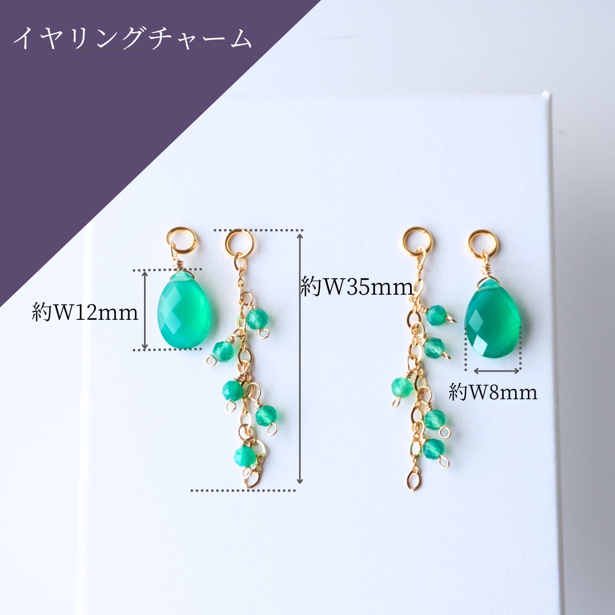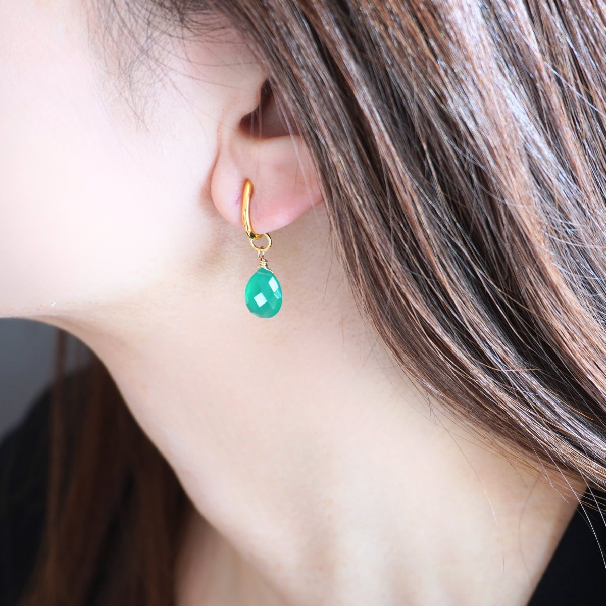 イヤリングチャーム 4way 着せ替え 天然石 グリーンオニキス 宝石質AAA ペアシェイプ 大人 差し色 グリーン