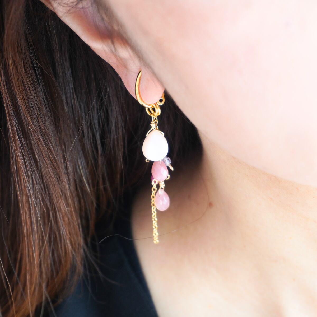 顔周りをぱっと明るく、そして、やさしく華やかな印象になれるイヤリングチャームです。