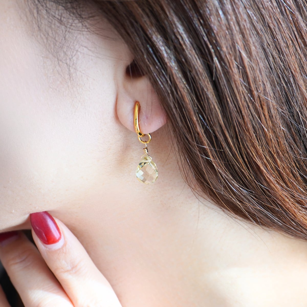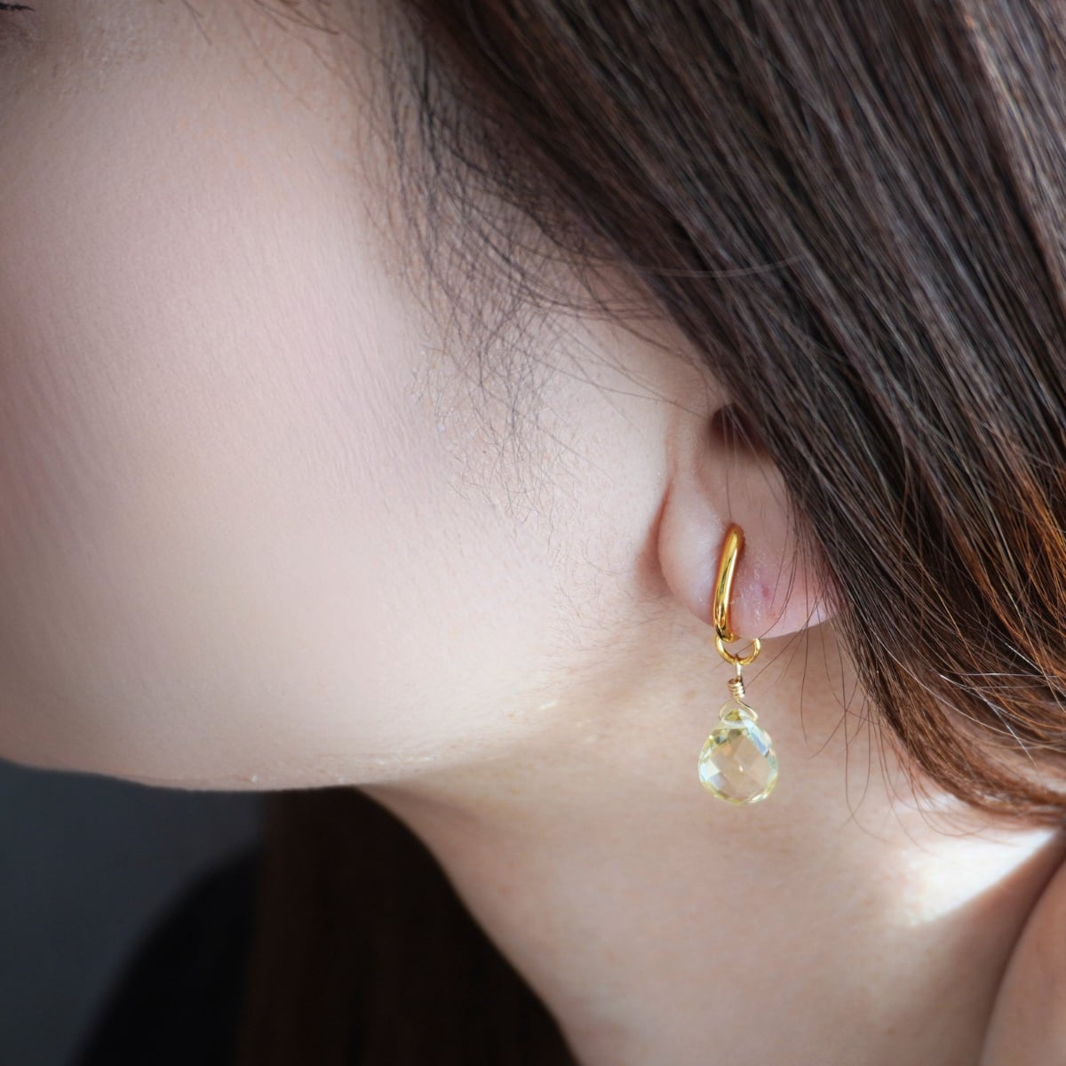 お顔回りが華やかになります。シンプルに一粒シトリン。華やかにロングチャーム。