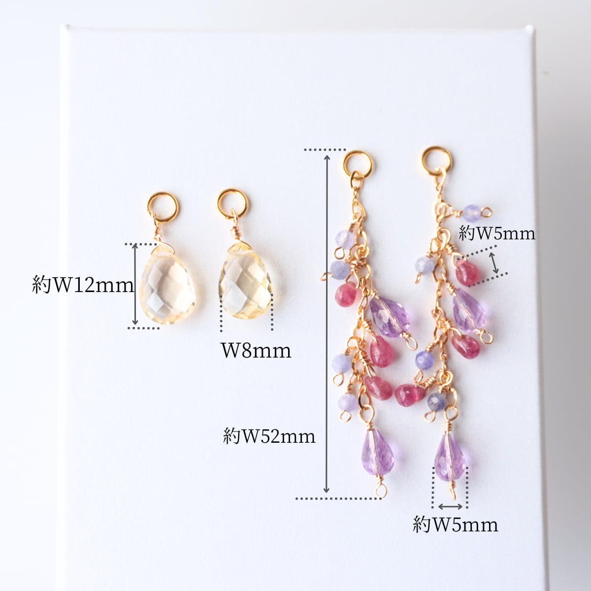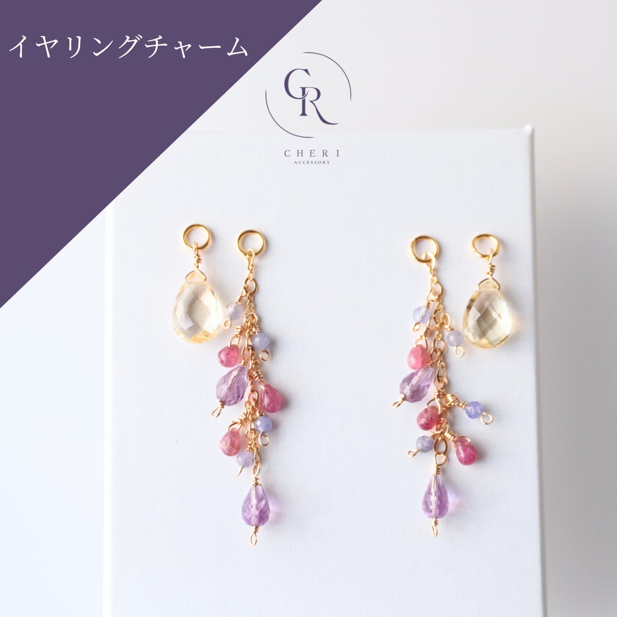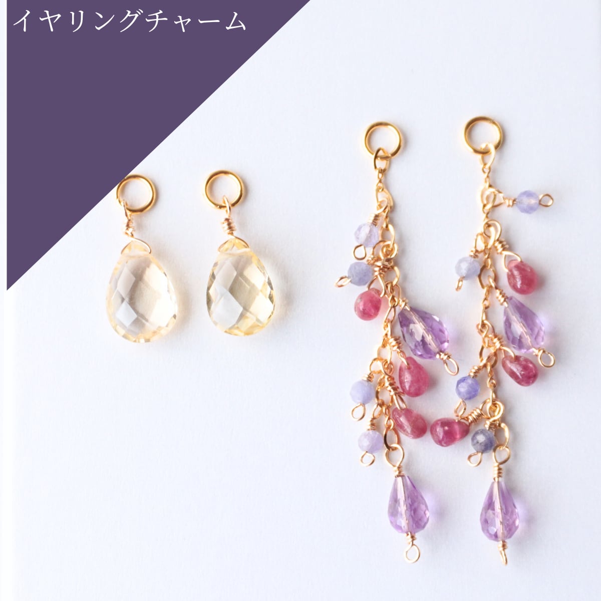 イヤリングチャーム 4way 14kgf 着せ替え 天然石 シトリン 宝石質AAA アメシスト ピンクトルマリン タンザナイト