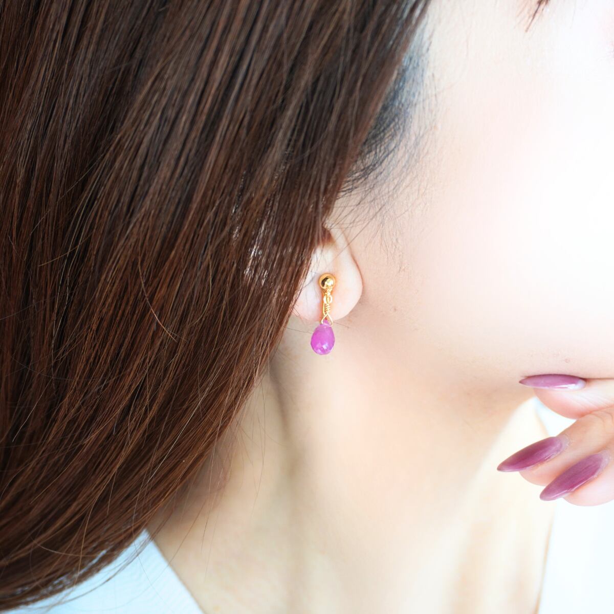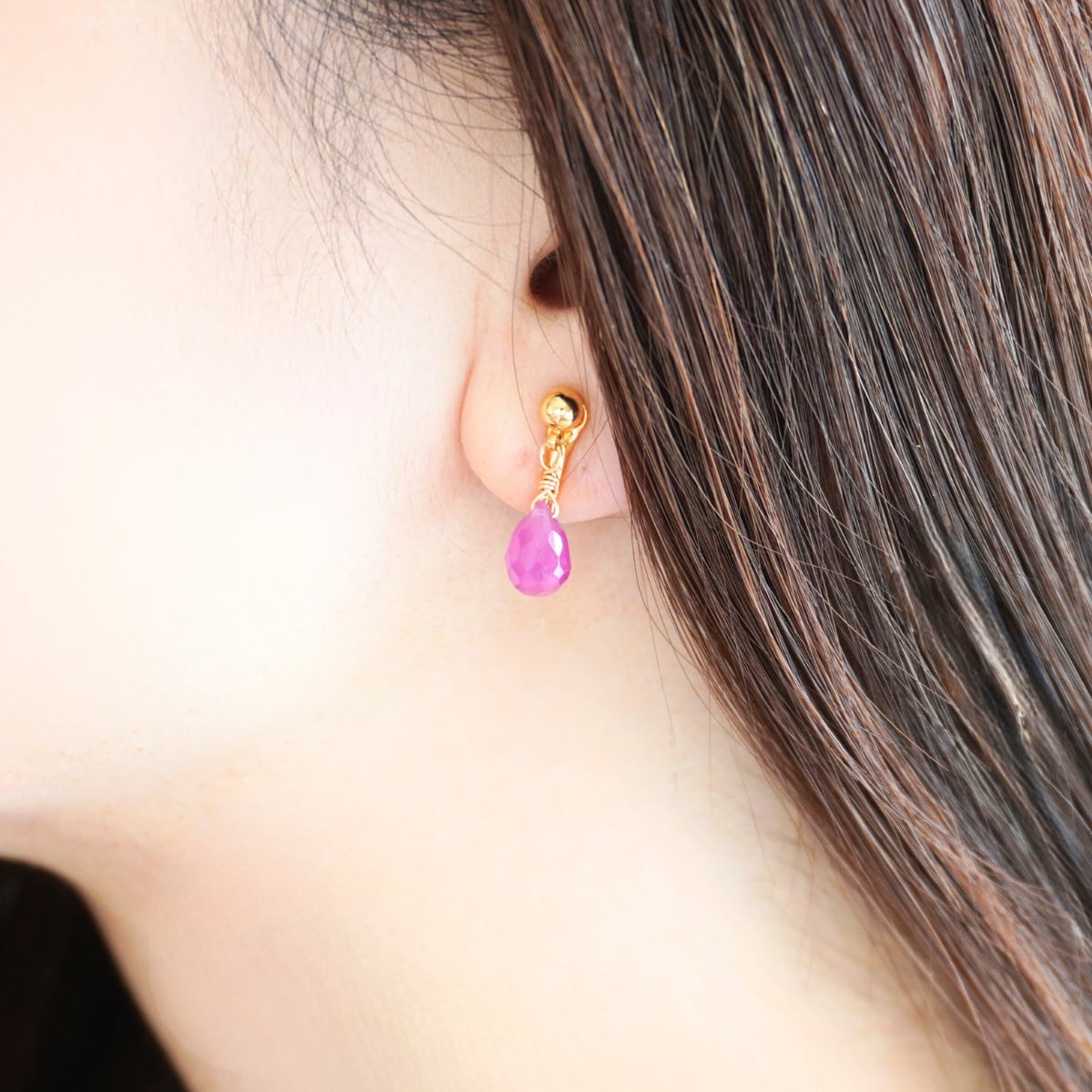 痛くないイヤリング ルビー スタールビー 14kgf 日本製 7月誕生石 天然石 赤 大人 上品 プレゼント