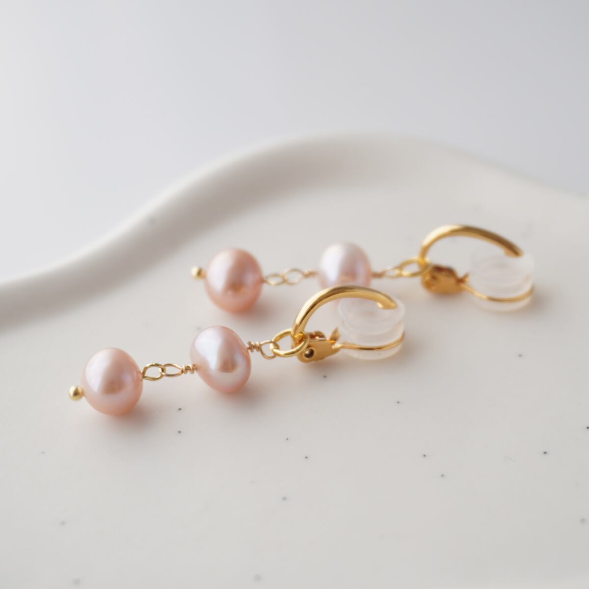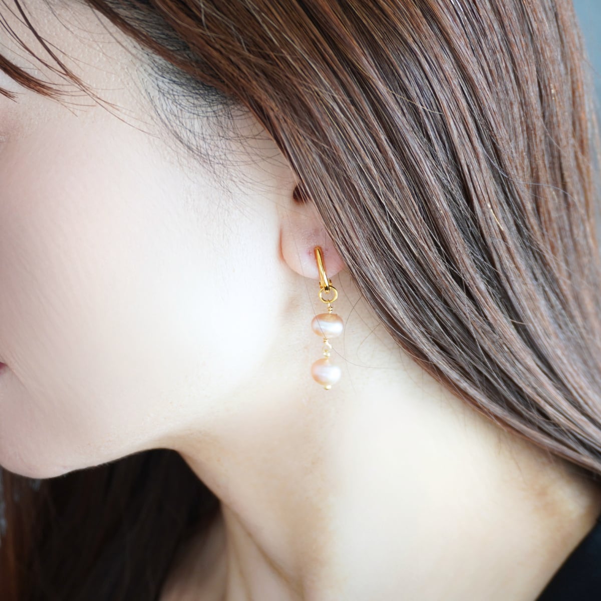 日本製金具 特許 K24gp Silver925 痛くないイヤリング フープ 淡水パール デイリー ピンクカラー 入学式 揺れる 春