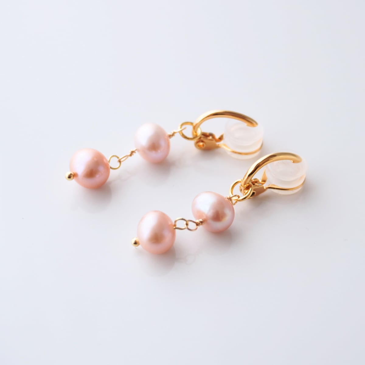 肌なじみの良い柔らかい印象の淡水パールイヤリングです。
