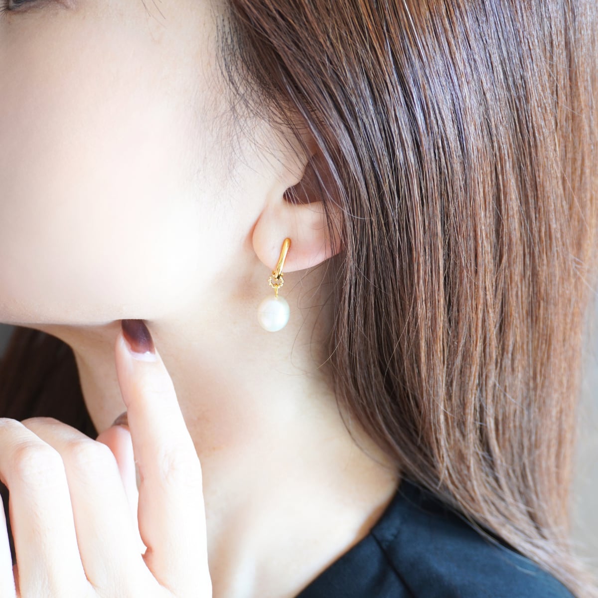 日常を彩るパールアクセサリー、2wayフープイヤリング。